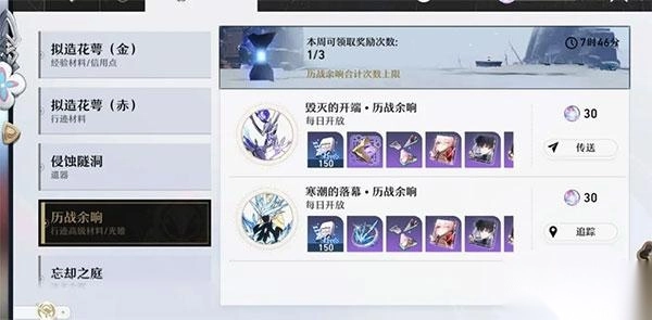天赋升级所需的周本材料,在《崩坏:星穹铁道》里对应的周本是历战余响。这个周本会产出遗器、天赋素材、光锥和摩拉,具体能拿到什么,自然还是得看运气。