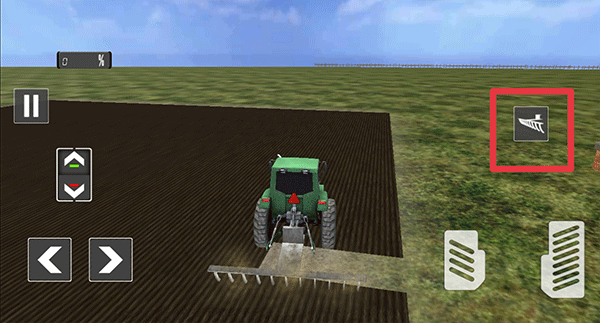 3、安装好工具后,驾车前往农场。抵达农场后,点击右上角的犁图标,就能完成耕田操作。