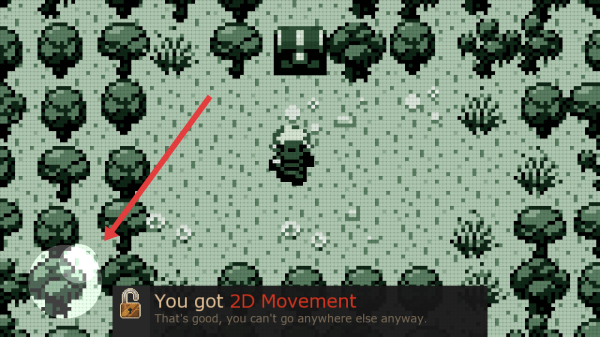 1. 依照指示,点击主界面的“New - Game”选项,开启Evoland的冒险之旅,进入初始的2D地图场景。