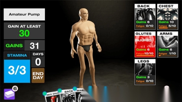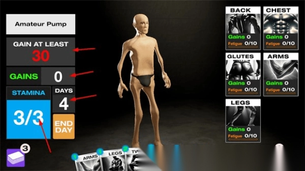 3. 左侧分别是目标、肌肉量、剩余天数、能量数,玩家需要在规定天数内达到目标才可以获胜。