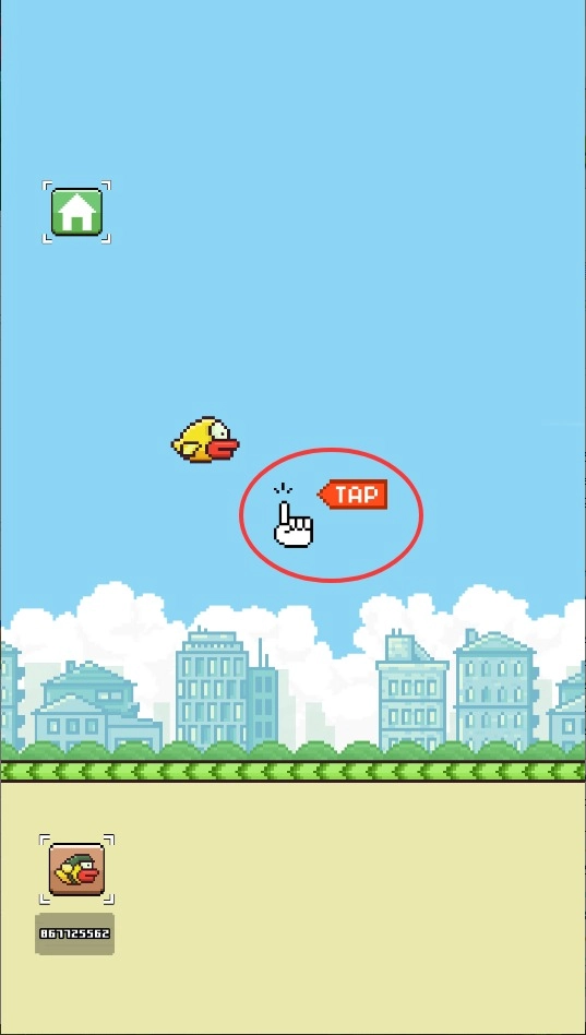 2、手指点屏幕控制小鸟往上蹦,注意别点太猛,轻轻按就行,保持平稳飞行最重要。