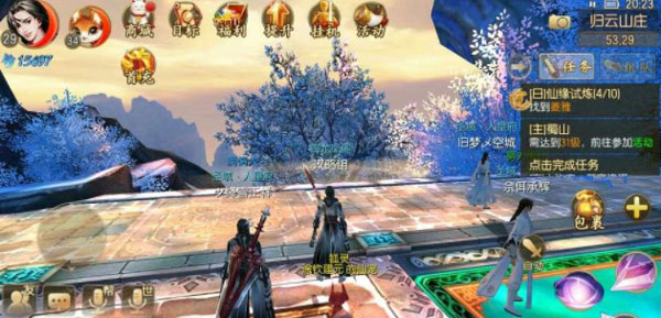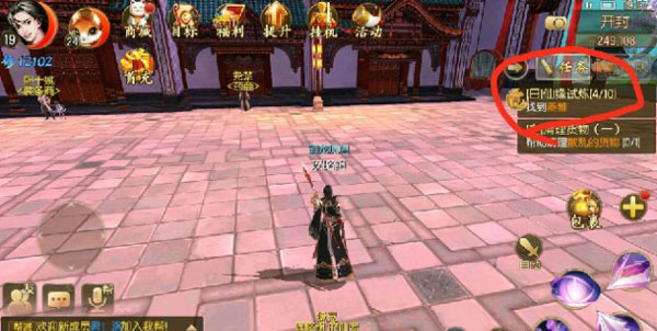 8、完成所有任务后,点击屏幕上方的“挂机”处,接取道心试练,接着去匹配打封魔(封魔地点在挂机处领取,不打封魔时记得冻结)。做完所有能做的任务后,去挂一会儿封魔,就能升到40级。此后,有任务就做任务,没任务就继续封魔。