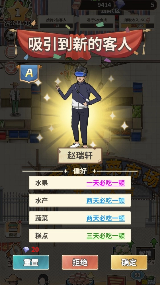1. 进入游戏后,轻点左下角开启揽客操作,还能够借助重置功能筛选出更优质的客人。