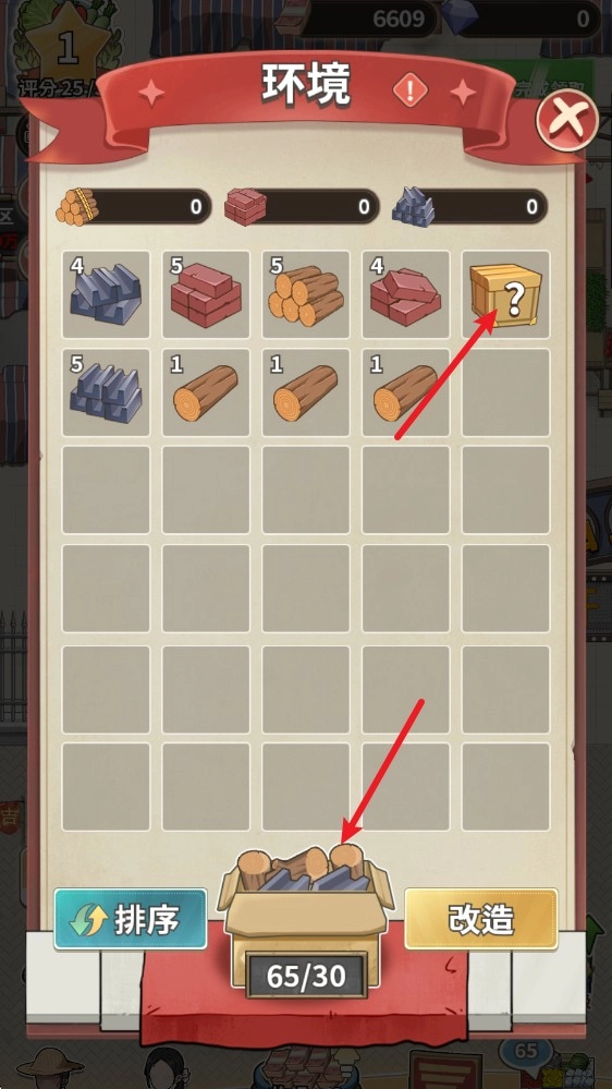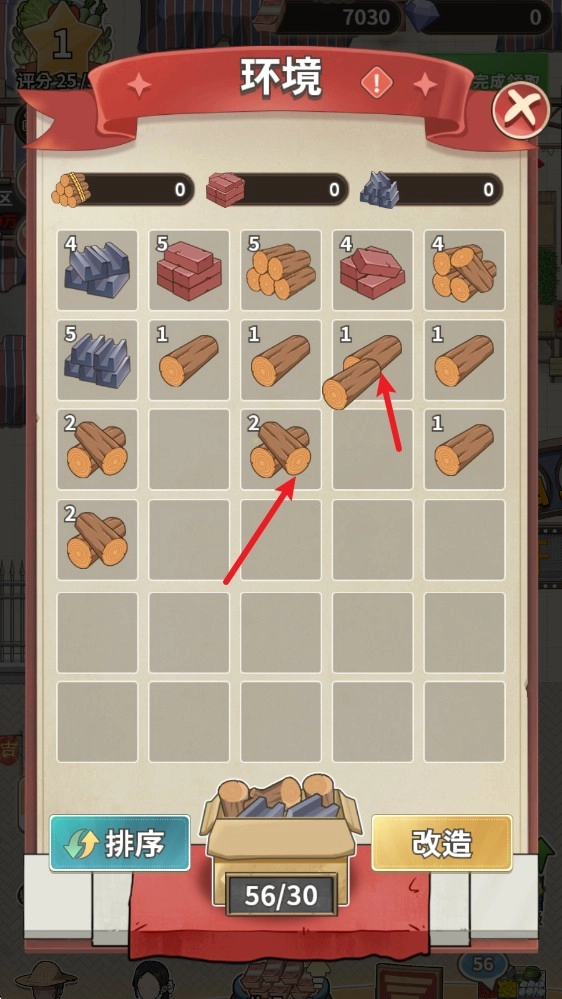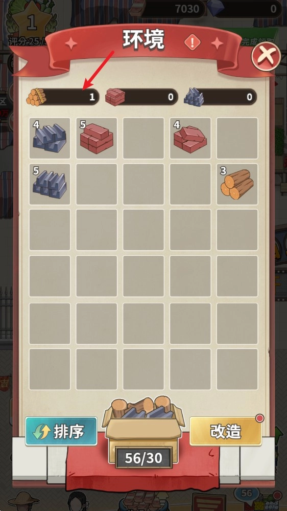 3、相同等级的建材能够进行合成,得到更高等级的建材,合成到6级之后就会变成改造材料了。