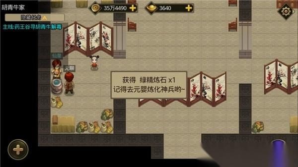 9、右上角的柜子里有1个紫仙御石,右下角的罐子里有3000铜币。