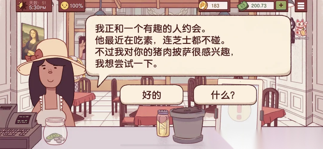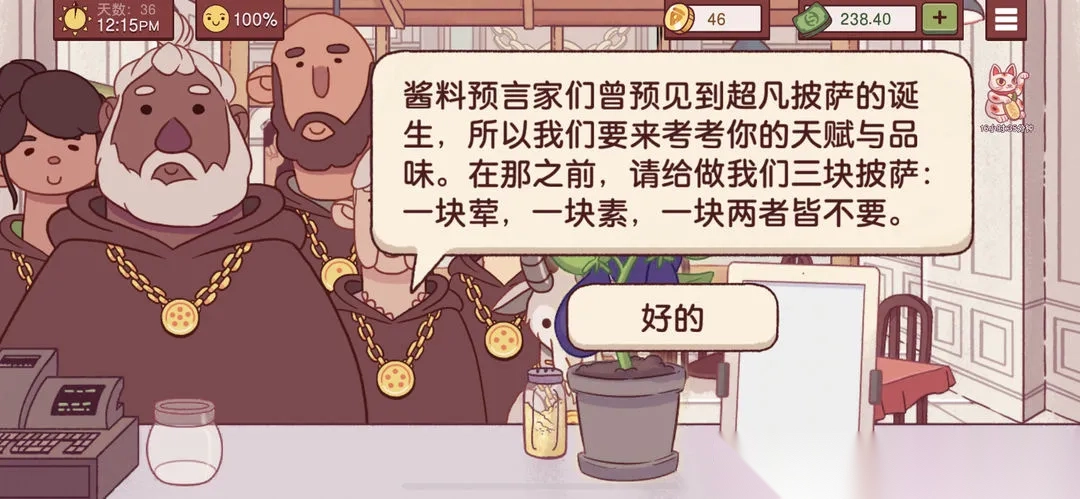 《可口的比萨》是一款能带来沉浸式体验的美食模拟经营手游,它是披萨店模拟经营游戏《可口的比萨》的中文正版。在游戏中,你将拥有一家专属的披萨店,该店仅在白天营业。在营业时段,会陆续有街坊邻居听闻名声而来购买披萨,他们各自会提出不同要求,而你得竭尽所能满足顾客订单。如此一来,不但能收获客户的好评,还能拓展更多生意!