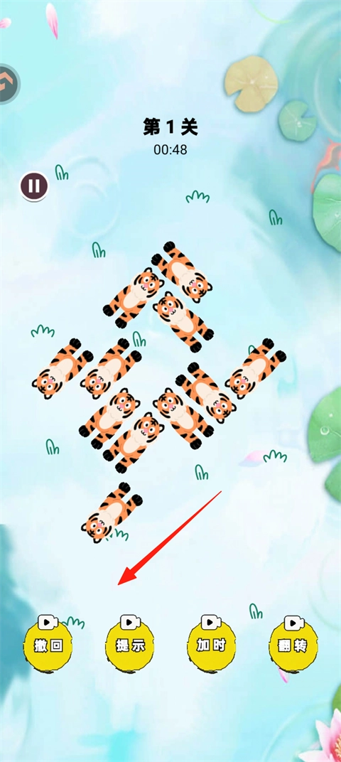 2、小老虎的朝向各不相同,玩家要依据其朝向进行放生。