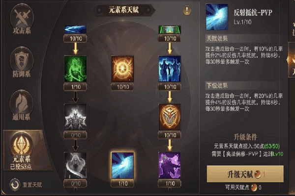 解析:随着5月份元素天赋的更新加强,反抵抗是敏法的核心得点满,但是需要点满前置奥法偏移,在这里大家点数不够可先放弃通用左路加点先点这里,甚至可考虑把元素左路也优先于通用左路点满。