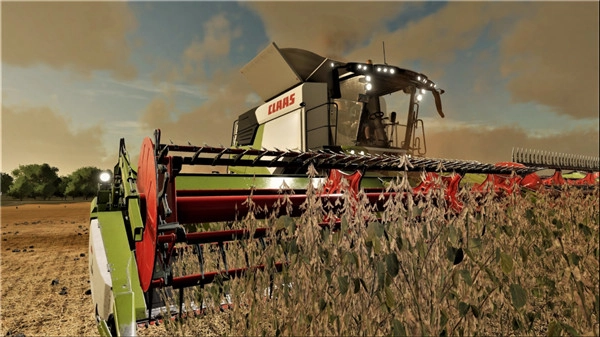 1、农作物成熟后,接下来的工作便是收割。玩家得借助联合收割机收割农作物,随后将其放置在土地旁的拖车里。