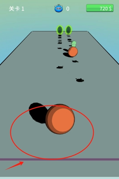 2、移动小球攻击,看着小球从鸡蛋变成陨石,破坏力飙升,特效炸裂屏幕。