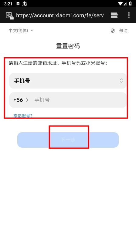 4、输入手机号+验证码,重置密码。