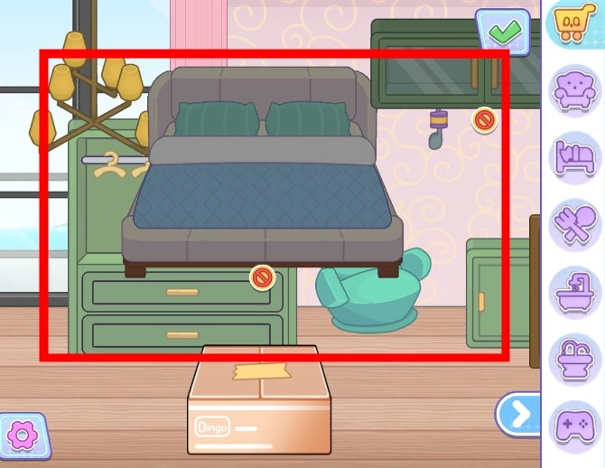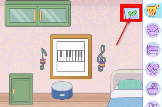 摆放完成后,点击确认按钮以保存当前房间的布置。