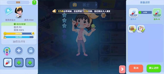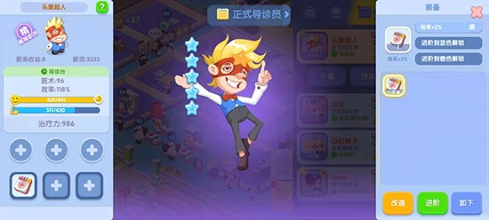 - 借助升星系统来提升医术值。招募员工,利用等级偏低的员工对其他员工进行升级,此外,还能够通过考取证书来进一步提升医术水平。