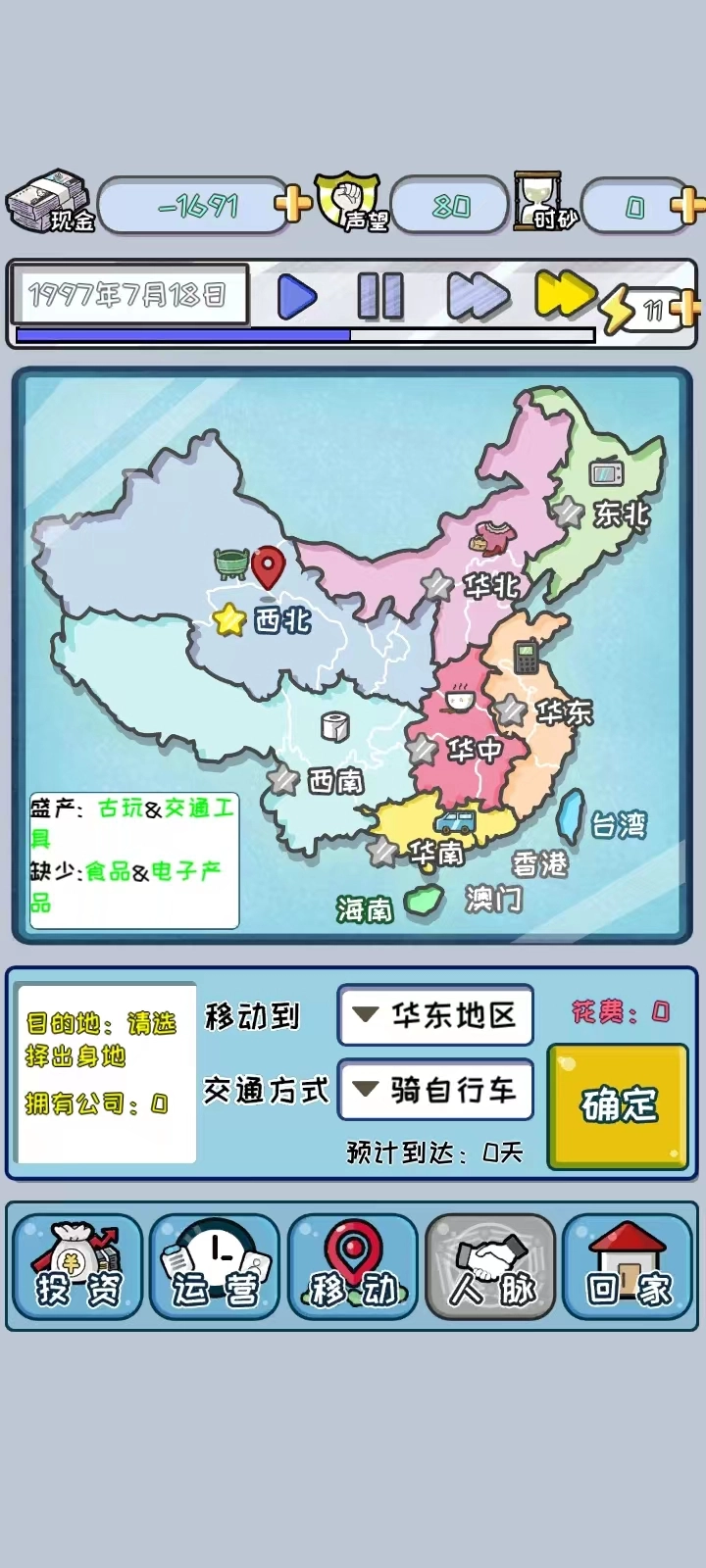 3、投资不同的项目,玩有趣的经营经营游戏,发展自己的公司;