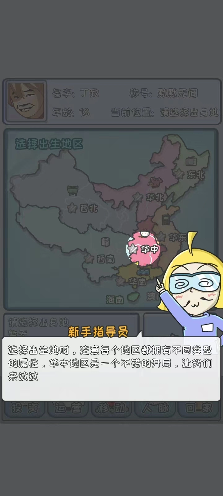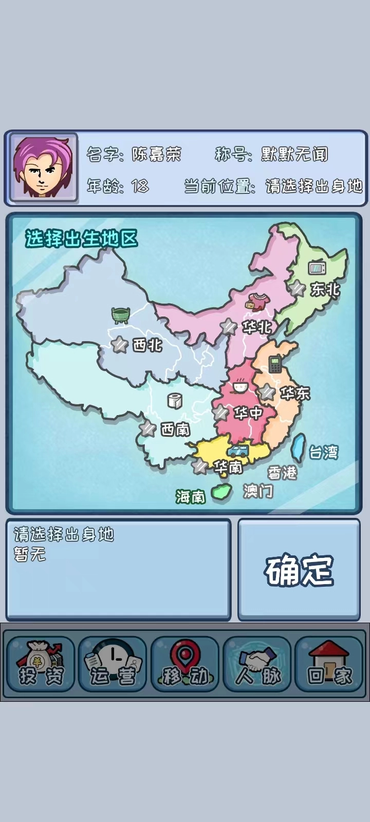 7、然后重新选择出生地区重新开始游戏。