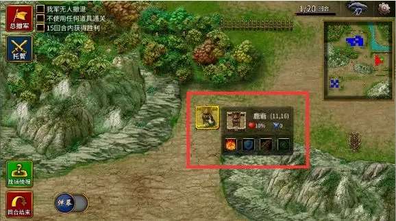 这一关卡的技巧在于,派遣贾诩去应对上方的庞统,随后确保后面出现的夏侯惇不会阵亡就行。