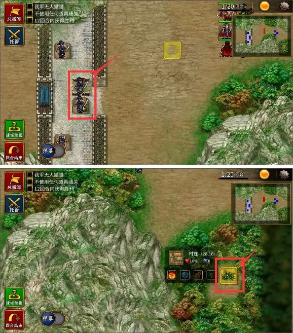 这一关中设有2波伏兵。其中1波位于右上角,当农民靠近时便会刷出。我们提前前往该位置等候并将其打掉,如此就能保全所有农民。