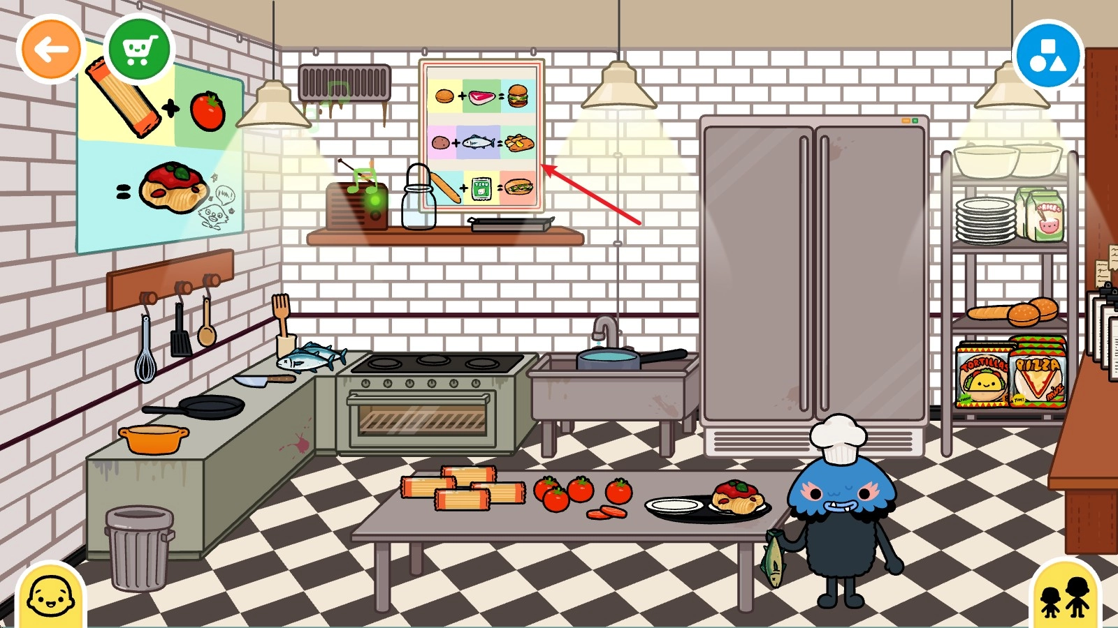 瞧!我们已经在这儿烤制出了美味的披萨,快让角色们来品尝品尝吧!