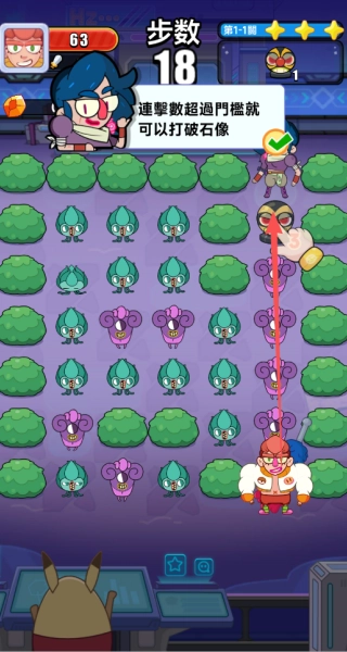 在关卡里会遇到石像这类的障碍物,你得先通过消除相邻的怪物来对这些石像发起攻击并将它们清除掉,这样才能继续往前推进。