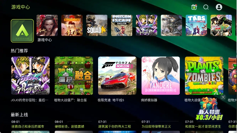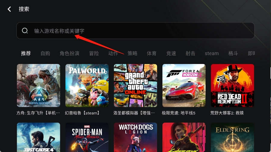 进入到首页之后包含了很多的云游戏资源。