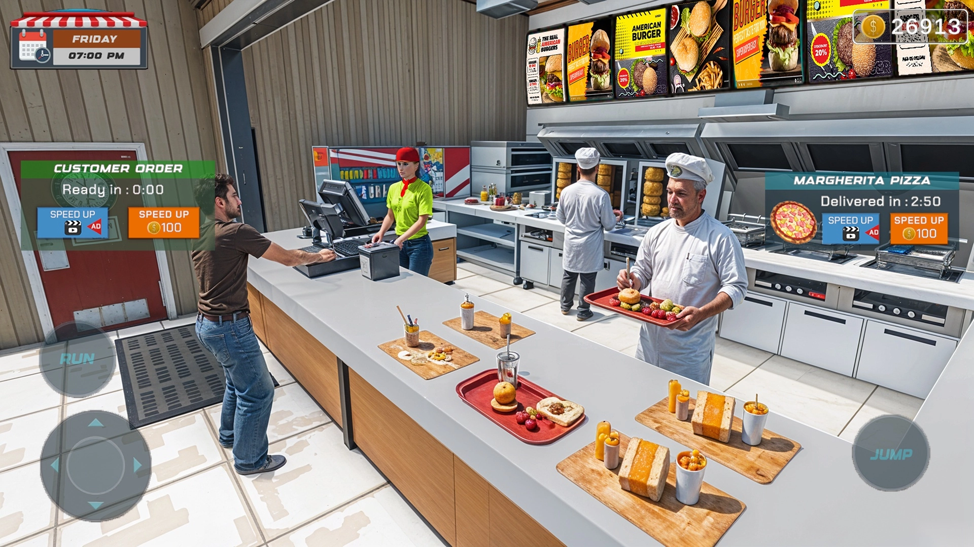 解锁汉堡、炸鸡、薯条、热狗、披萨、饮品等多种快餐品类;