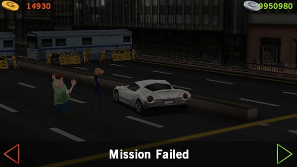 要是没能及时把方向盘回正,很可能就会引发【交通事故】,游戏也就随之结束了。此时点击左边的箭头可以返回,点右边的箭头则能继续。