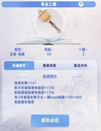 敏暴流派的搭配为黄金锤、洒水、齿轮,专门针对不死系和恶魔系怪物,练级效率不比其他物理职业差。不过到了后期,怪物血量会大幅增加,这时候如果能拿到80级的驱魔武器,并且把它强化到+10以上(+15是比较理想的),就可以考虑转型成驱魔流派了。在游戏的初中期阶段练级,还有打图鉴的时候,都推荐选择敏暴流派。