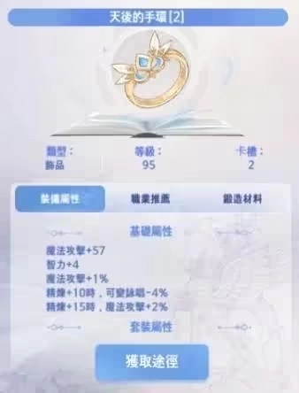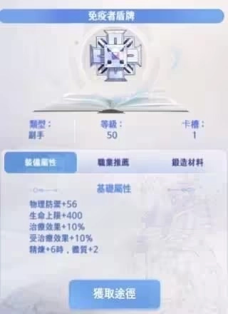 盾牌推荐免疫者之盾;饰品方面,选择加魔攻的款式即可,初期阶段不同饰品之间的属性差异较小。