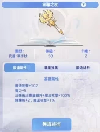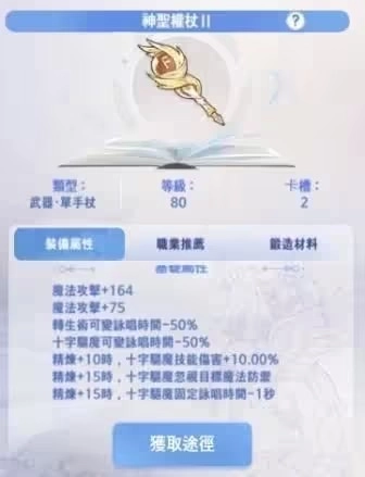 武器首选黛雅之杖——自带魔攻加成,实际补血量反而比红十字杖更出色,是神官的不二之选。