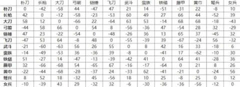兵种相克详细表: