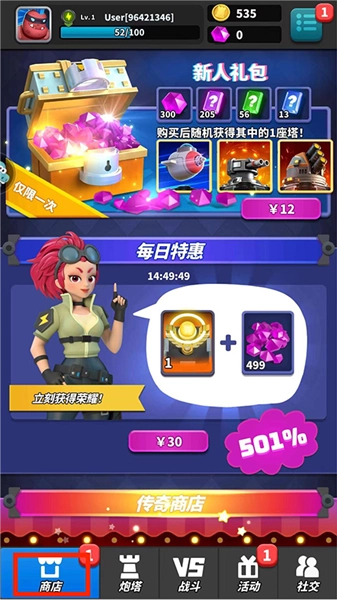 3、商店随机刷新传说炮塔