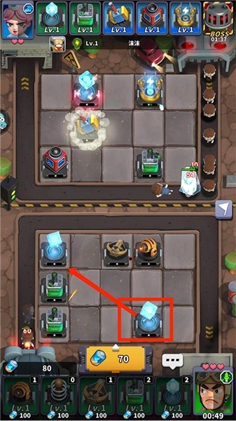 6、把两个同类型的炮塔拖动到一起进行合成,就能升级为更强大的炮塔,它会具备更高的伤害输出和更快的射击速度,这样就能更迅速地消灭僵尸了。