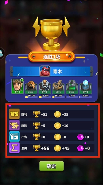 7、对战结束后,会进入【游戏结算】界面,在该界面中可以查看胜利方的炮塔阵容以及所获得的奖励。