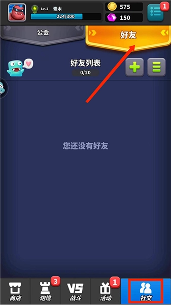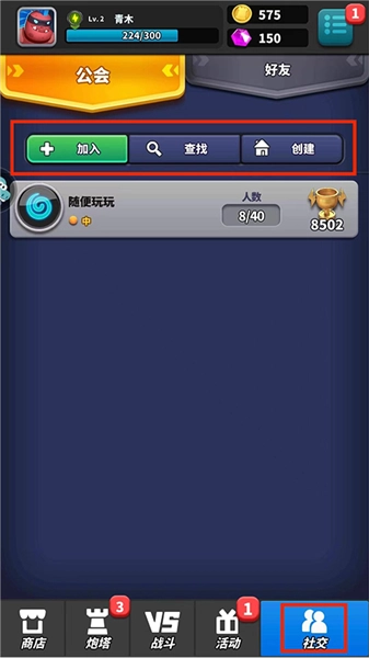 9、进入【社交界面】后,玩家能够在此进行工会的加入、查找与创建操作,同时也可以在这里添加好友。