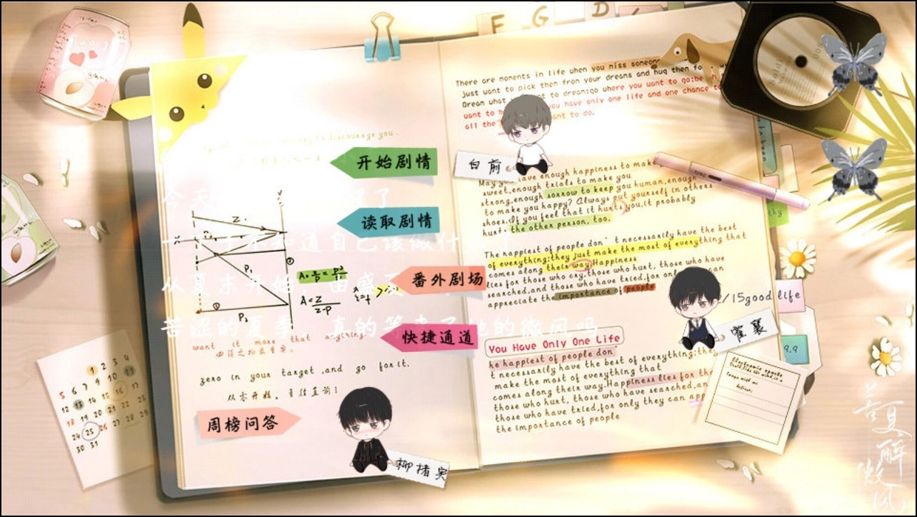 《苦夏醉微风》中文版是一款制作精良的视觉小说类文字剧情游戏。它采用独特的手绘风格,为玩家带来出色的视觉体验;玩家可与性格各异的男性角色互动,开启甜蜜的校园恋爱旅程。游戏玩法自由、内容丰富,感兴趣的玩家千万不要错过。