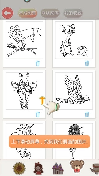 上下滑动屏幕,找到目标图片后,点击该图片即可开始作画。