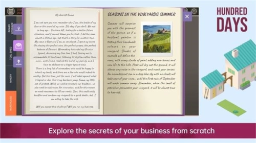 3、日志运用(第三页),深入研读“SEASONS IN THE VINEYARD”,依据季节开展剪枝、施肥工作;通过笔记里的配方进行尝试与调整,解锁珍稀酒款。