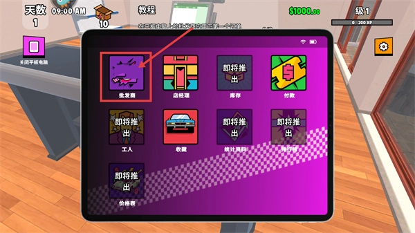 2、在平板电脑界面里,点击【批发商】选项进入对应的功能页面,这是完成首个订单任务的关键入口。