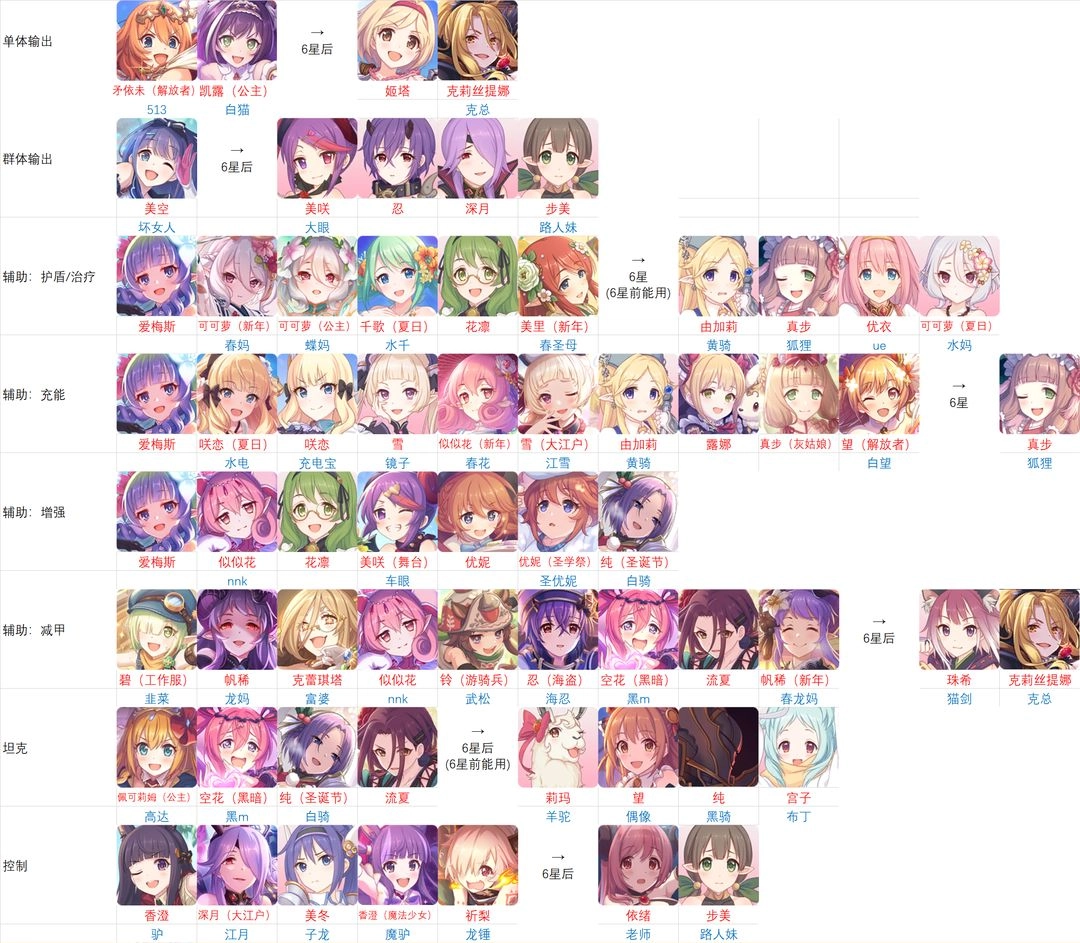 等级低的时候可以先练些推图好用的防御型辅助,再把竞技场两队的最低配置凑齐就行,等等级上去了再慢慢多练,不用太焦虑。