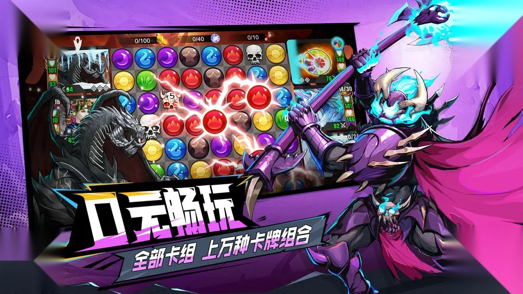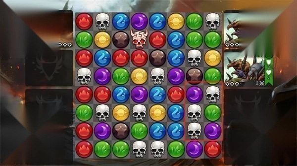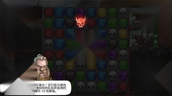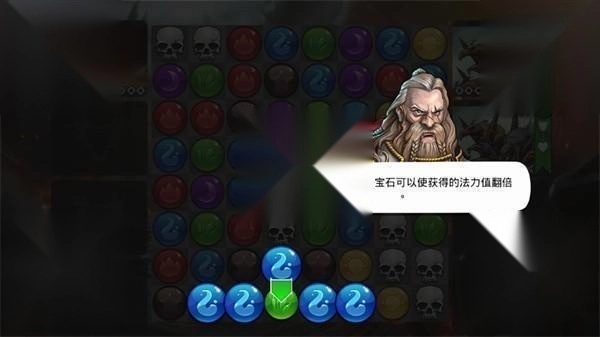 3、通过匹配同色符石来触发咒法与技能,匹配骷髅头则可消灭敌人。