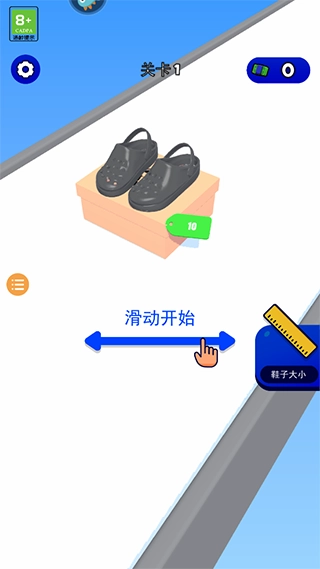 1、玩家进入《鞋子进化论》游戏后,通过左右滑动屏幕即可开启游戏进程。
