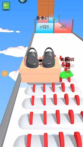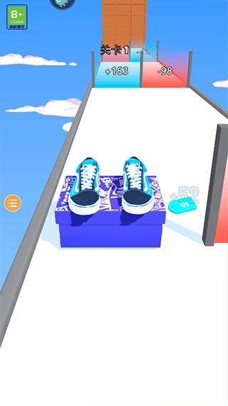 2、在跑酷的赛道上左右移动,改造你的鞋子造型。