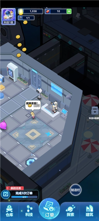 5、这时会有太空生物顾客前来采购物资,点击顾客头顶的气泡,就能查看客人的订单需求;