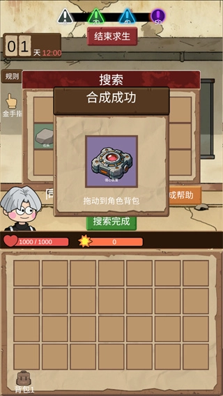 2、白天是相对安全的时段,因此一般会选择在白天外出搜寻物资,每个房间都有一定几率获取物资与防御装备。需要注意的是,夜晚降临后怪物便会出现,务必提前做好防御准备。