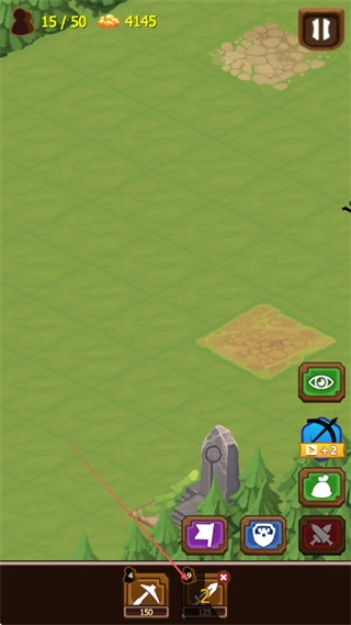 3、点击下方的工具按钮,比如镐头、刀剑这类,去升级或者部署士兵,以此增强战斗能力。