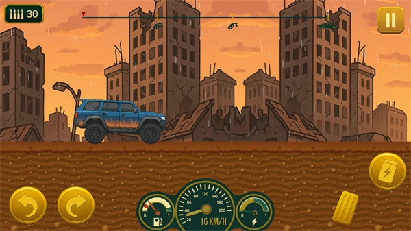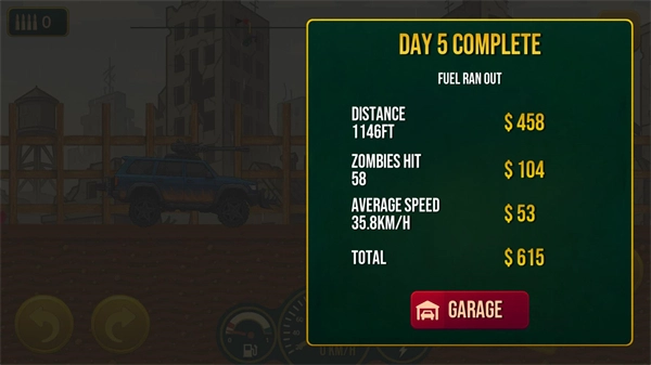 5、操控你的车辆持续前进直至油量耗尽,油量耗尽后游戏便会结束,结束后系统会依据你行驶的距离发放不同数量的金币。