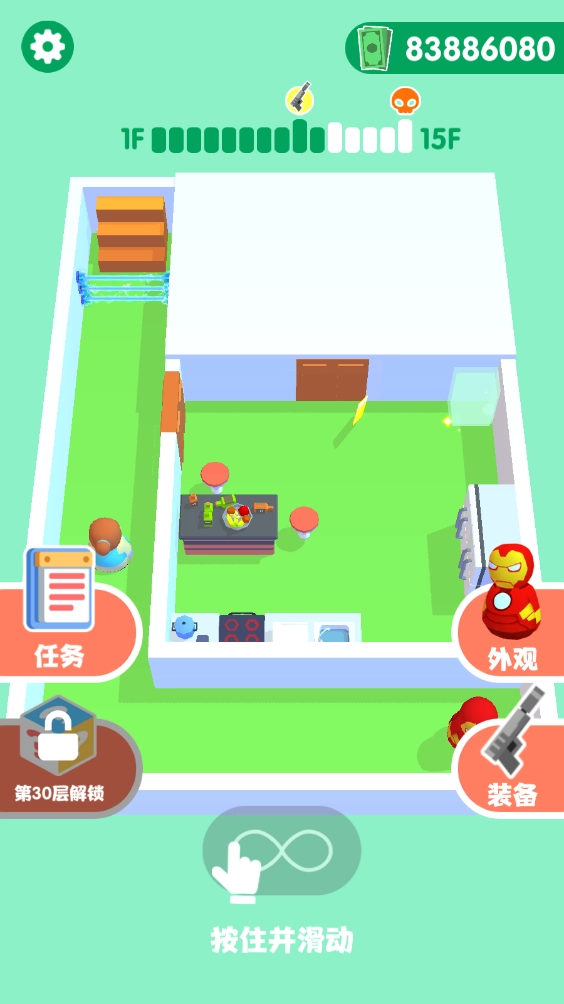 1、关卡设计复杂多变,每一层房屋的摆设各不相同,还设有精心设计的机关与陷阱,挑战过程十分有趣。