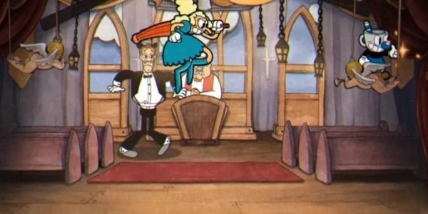 在第一阶段,玩家需要分别站到左右两侧的天使雕像上,将两个雕像都压至最底端后,舞台后方会发生坍塌。此时Boss的丈夫会被掉落的天花板砸中身亡,没了丈夫也就不会有孩子,到了第二阶段,场景背景就会切换成教堂。