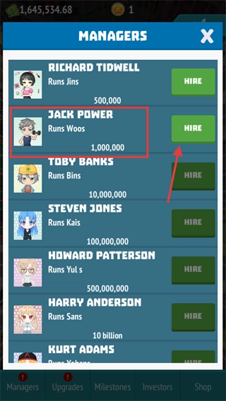 3、当资金充裕时,可雇佣【JACK-POWER】这类经理,他们能够管理【Woos】类别的偶像,实现自动运营以减少手动操作,建议优先选择成本在可承担范围内的经理,从而提高运营效率。