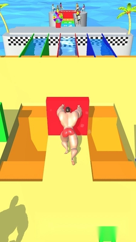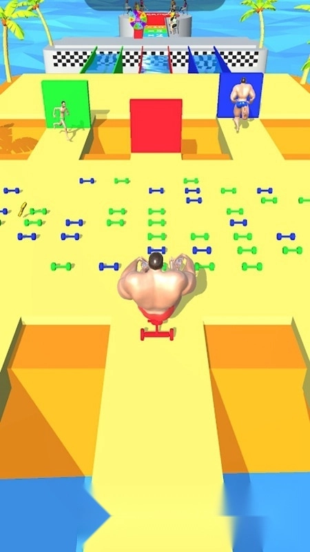 3.在赛道中收集各类道具,增强肌肉与体格,提升闯关效率。